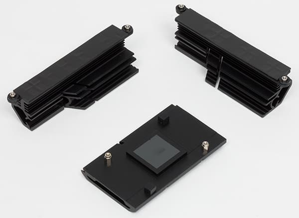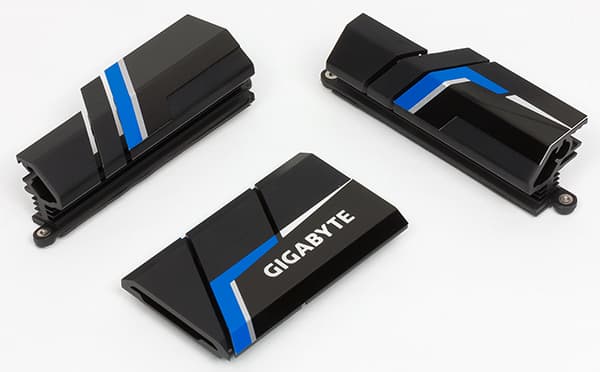 Для охлаждения различных тепловыделяющих компонентов на плате Gigabyte Z170X-Designare предусмотрено в совокупности три небольших радиатора. Один отдельный радиатор установлен на чипсете. Еще два радиатора расположены по двум смежным сторонам процессорного разъема и закрывают MOSFET-транзисторы регулятора напряжения питания процессора.