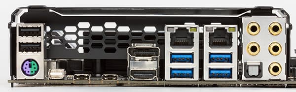 Поскольку процессоры Skylake-S имеют интегрированное графическое ядро, для подключения монитора на задней панели платы имеются один порт DisplayPort 1.2 (максимальное разрешение 4096×2304@60 Гц) и один порт HDMI 1.4 (максимальное разрешение 4096×2160@24 Гц).