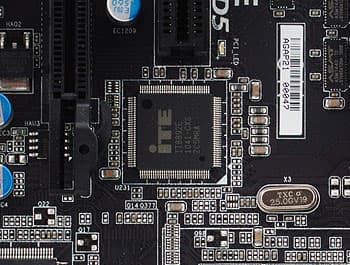А вот четвертая понадобилась для… поддержки шины PCI :) Дело в том, что то, чего так долго боялись оппортунисты и ретрогады, свершилось — в новой серии чипсетов Intel устаревшую шину поддерживают только ультрабюджетные «бизнес»-модификации В6x и Q6x. Сложно, впрочем, сказать, чего добивалась этим компания Intel — на деле, системные платы без поддержки PCI встречались и ранее. И нельзя сказать, что теперь их вдруг по мановению волшебной палочки стало больше — все новые полноразмерные ATX-платы (в том числе и самой Intel) поддерживают по два слота PCI. Но разводка, конечно, немного упростилась, поскольку от самого чипсета достаточно вести всего один линк PCIe, на который и «вешается» соответствующий контроллер, распаиваемый в непосредственной близости от слотов. В продукции Gigabyte для этого применяется ITE IT8892E, обеспечивающий поддержку трех устройств PCI. Два на плате очевидно присутствуют в виде слотов, но и третий не пропал — используется для подключения FireWire-контроллера.