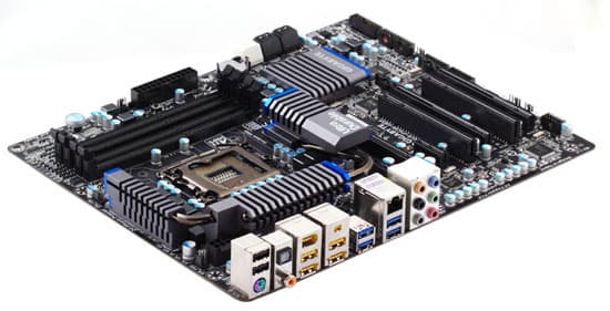 А куда вообще подевались линии PCIe, которых в P67 целых восемь, причем полноскоростных, так что на слоты осталась только половина? Традиционно, одна уходит на поддержку сетевого контроллера и еще одна — для eSATA (несмотря на то, что компания Intel начиная с H55/H57 доработала свои чипсеты до состояния нормальной совместимости с eSATA, производители пока этим в топовых моделях брезгуют). Третья линия задействована контроллером USB 3.0, о чем мы отдельно поговорим чуть позже.