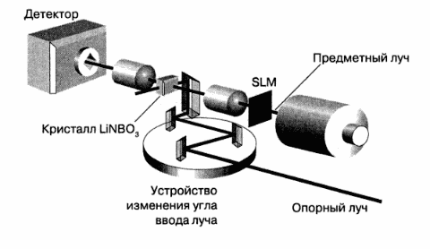 Как же функционирует система голографической памяти? Рассмотрим для этого установку, собранную исследовательской группой из Almaden Research Center.