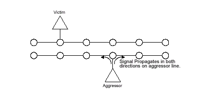 - Прямые перекрестные помехи (Forward Crosstalk) определяют наведение сигнала в линии-"жертве", распространяющегося в том же направлении, что и сигнал в линии-"агрессоре";
