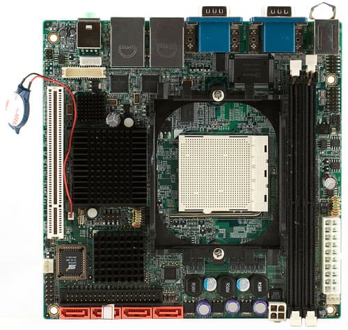 Мы уже рассматривали платы в формате Mini-ITX, например, весьма функциональную Albatron KI51PV-754 и, надо сказать, несмотря на дороговизну (как самих плат, так и соответствующих корпусов), спрос на такие платы имеется не только среди производителей встраиваемых систем, но и «частных» потребителей. И в первую очередь поклонников «моддинга», желающих сделать свой компьютер не только оригинальным внешне, но и неожиданным по конструкции. Ведь маленькую плату проще замаскировать внутри избранного предмета, а поскольку компактные платы используются и для различных систем промышленной автоматизации, то зачастую имеют и соответствующий набор интерфейсов, позволяющий подключить, например, какие-нибудь сервоприводы и датчики. Словом, заняться робототехникой на дому. И поскольку мощного чипсета и богатого оснащения, в таком случае, не требуется, сегодня мы рассмотрим своего рода противоположность упомянутой выше платы от Albatron.