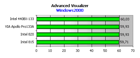 В промышленном дизайнерском программном пакете i815 снова похвастать особо нечем. Однако, во всех профессиональная OpenGL-графика под Windows 2000 оказалась единственным применением, где i815 не порадовал нас высокими показателями. Впрочем, ничего странного в этом нет. Естественно, для этих целей лучше подходит high-end чипсет i820.