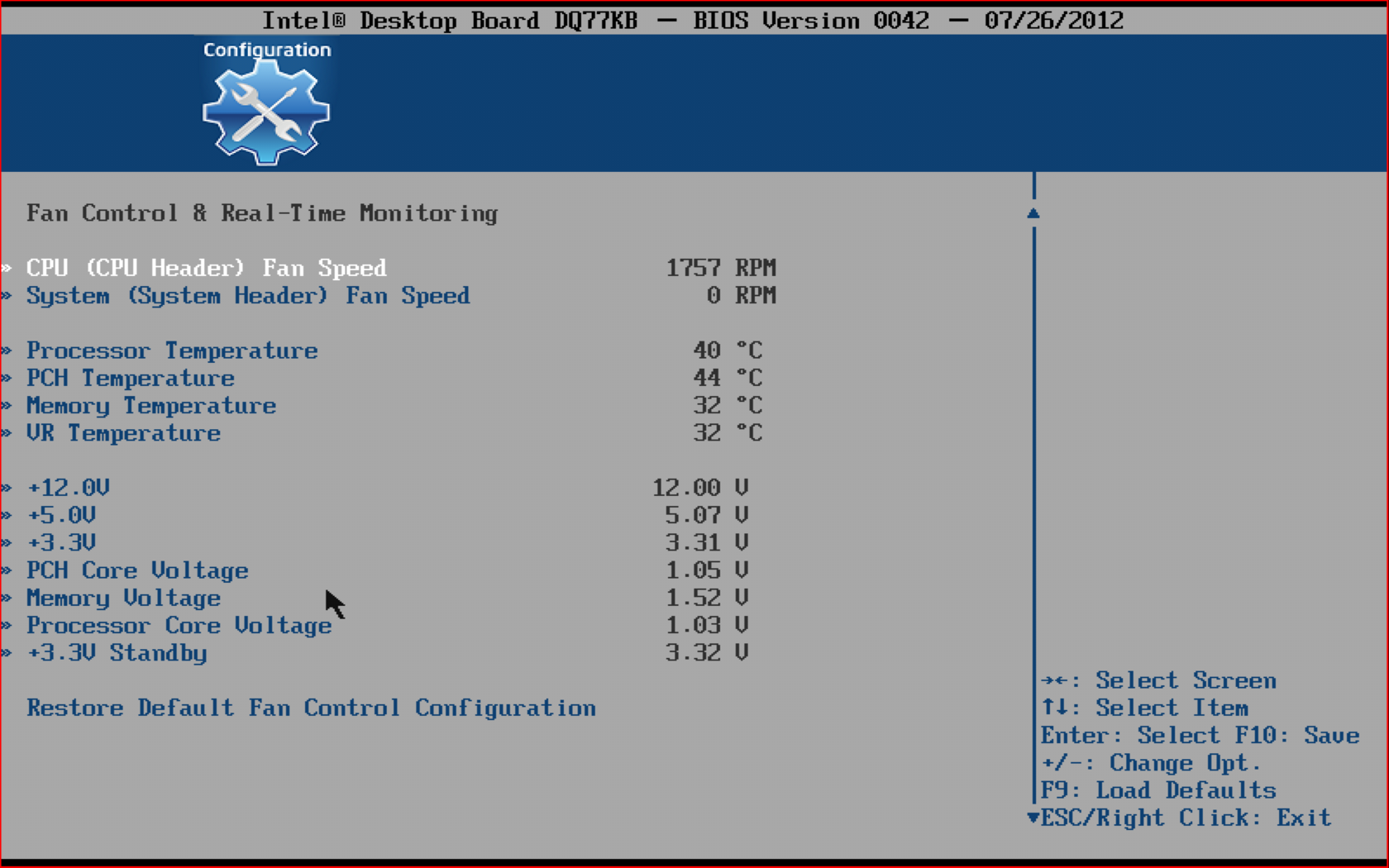 - Configuration: настройка периферийных контроллеров, портов накопителей, встроенного графического ядра, управление вентиляторами, контроль аппаратных датчиков;