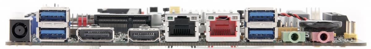 Кроме возможности работы с панелями eDP и LVDS, плата имеет два стандартных видеовыхода для встроенного в процессор графического ядра — HDMI 1.4 и DiaplayPort 1.1a. От аналоговых вариантов отказались полностью, что вполне ожидаемо.