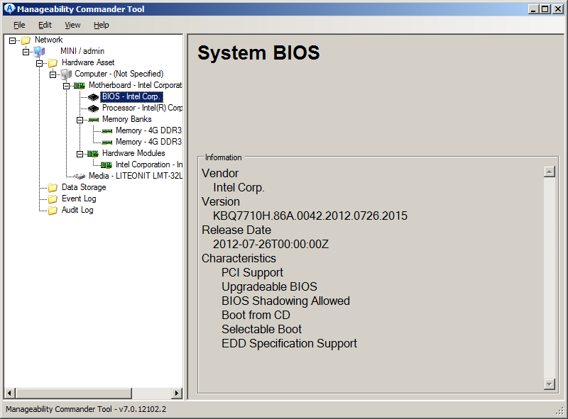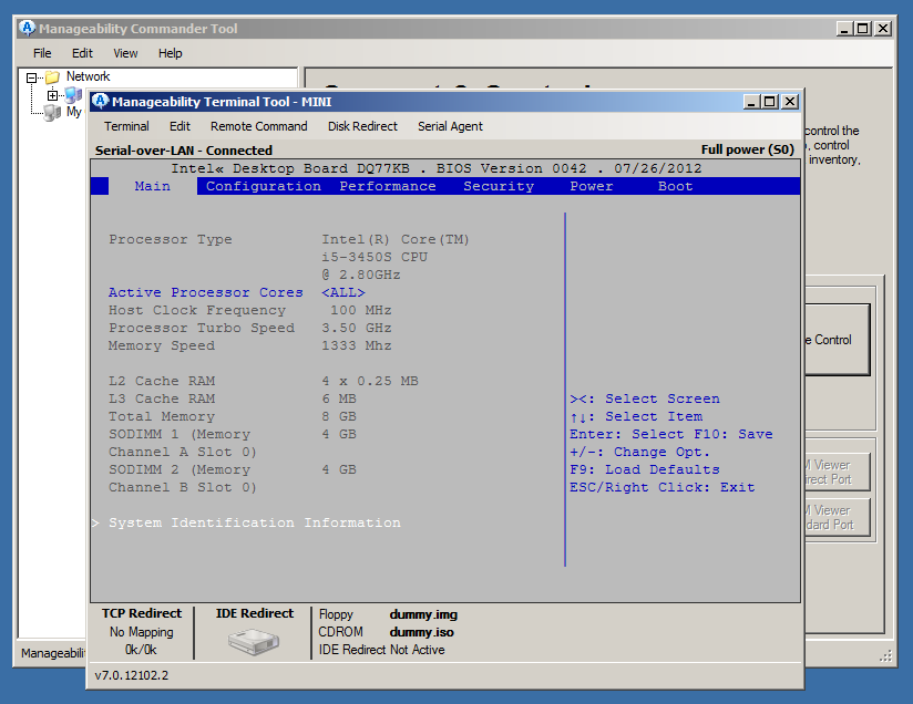 Третий вариант, который стоит упомянуть — набор утилит Manageability Developer Tool Kit. Отметим, что запускать его желательно на системе с процессором Intel. В нем есть графические утилиты для работы с удаленными AMT-системами, которые достаточно удобны и просты в использовании. В частности, с этой программой можно через перенаправление консоли и перезагрузку в режиме доступа к BIOS менять его настройки или монтировать образы дискеты или диска для удаленной загрузки с него.
