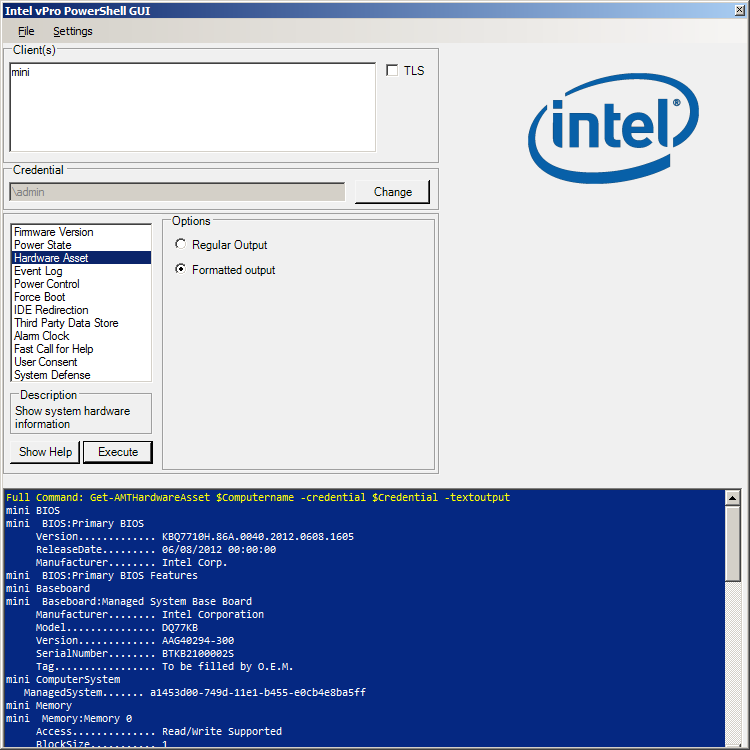 Еще одним вариантом, полезным для автоматизации задач, является работа через специальный модуль Intel vPro technology module для «расширенной» версии консоли Microsoft Windows PowerShell. Он также бесплатен и доступен на сайте Intel. Для уточнения его возможностей пригодится документ Take Intel vPro Technology For a Test Drive. Там же описан и графический вариант работы этого модуля.