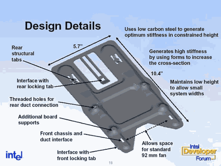 Список преимуществ форм-фактора BTX (Balanced Technology Extended), известного ранее под рабочим названием Intel Big Water, включает себя поддержку низкопрофильных системных плат, оптимизированную разводку компонентов с продуманным термобалансом и путями прохождения потоков воздуха, масштабируемые размеры плат с возможностью применения миниатюрных вариантов блоков питания; оптимизированную структуру крепления плат и более качественные механические характеристики конструкций