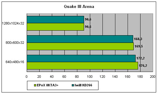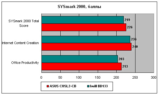 Мы не стали приводить особенно много данных, потому что на самом деле все довольно очевидно даже при взгляде на результаты SYSmark 2000 и Quake III. В целом можно сказать, что производительность Iwill BD133 не ошеломляет, но и не сильно разочаровывает — нормальная, "крепенькая" плата, хороший середнячок, не хватающий звезд с небес (сравнивали все-таки с признанным лидером), но в то же время и без откровенных "тормозов". Работала плата устойчиво, никаких нареканий в процессе тестирования не вызвала, поэтому вполне может быть рекомендована тем, у кого 2-3 fps в Quake III не вызывают головных болей и нервных расстройств :)