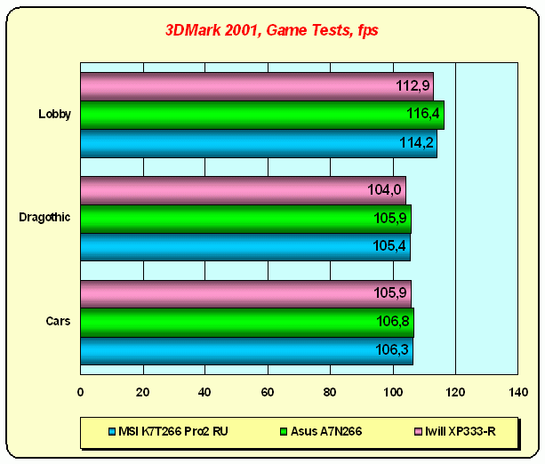 Легко заметить, что все эти диаграммы показывают одно и то же: ALi MAGiK 1 rev. C так и не смог обогнать VIA KT266A, хоть и отстает от него не очень сильно. nForce 420-D стабильно и везде показывает лучший результат, так что для тех, кто не считает денег, этот чипсет однозначно лучший выбор. По соотношению же цена / производительность чипсет VIA все равно выигрывает: сейчас уже доступны довольно недорогие платы на KT266A, а на nForce таковые появятся скорее всего еще нескоро (да их и так не очень-то много). Ну а теперь группа "кое-что не так, как везде", на удивление малочисленная.
