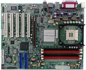 Краткие характеристики платы: разъемы памяти — 4 DDR SDRAM; слоты расширения — AGP Pro/ 5 PCI; порты ввода/вывода — 2 COM/ LPT/ 2 PS/2/ 2 IEEE 1394/ 6 USB 2.0; размеры — 305х245 мм.