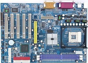 Краткие характеристики платы: разъемы памяти — 2 DDR SDRAM; слоты расширения — AGP/ 5 PCI/ CNR; порты ввода/вывода — 2 COM/ LPT/ 2 PS/2/ 6 USB 2.0; размеры — 305х210 мм.