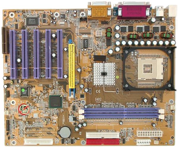 Не распаяны, но разведены на плате: контроллер IDE RAID (реализованный в версии платы I402R) и его разъемы, а также разъемы AUX-in и Modem-in.