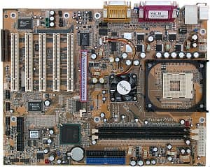 Краткие характеристики платы: разъемы памяти — 2 DDR SDRAM; слоты расширения — AGP/ 5 PCI/ CNR; порты ввода/вывода — 2 COM/ LPT/ 2 PS/2/ 6 USB 2.0; размеры — 305х235 мм.