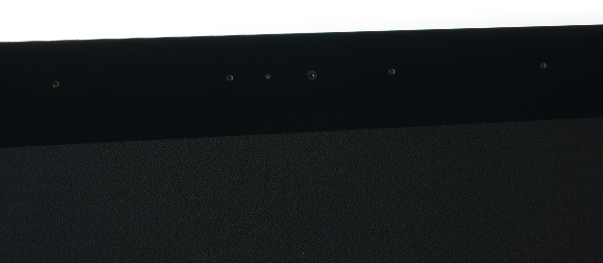 Лицевая поверхность экрана выполнена в виде стеклянной пластины с зеркально-гладкой поверхностью, устойчивой к появлению царапин. Данная поверхность служит основой для датчика прикосновений. Отражение в экране двоится, что предполагает наличие воздушной прослойки между поверхностью матрицы и внешним стеклом. Поверхность самой матрицы под стеклом слегка матовая, поэтому экран отражает как прямые источники света (внешней поверхностью), так и рассеянный свет (поверхностью матрицы), это уменьшает читаемость в условиях сильной внешней засветки. К сожалению, специальный антибликовый фильтр (покрытие) отсутствует, поэтому, особенно на темных участках изображения, пользователь видит отражение предметов, находящихся перед монитором, и себя лично. На внешней поверхности экрана может быть и есть специальное олеофобное (жироотталкивающее) покрытие, но эффективность его низкая, следы от пальцев удаляются с трудом, а появляются очень быстро.