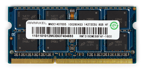 Как указано в спецификации, моноблоки Lenovo A740 комплектуются памятью DDR3-1600, объем которой может составлять до 8 ГБ. В нашем случае в моноблоке был установлен всего один модуль памяти DDR3-1600 Ramaxel емкостью 8 ГБ. Отметим, что для установки памяти на системной плате имеется только один слот SO-DIMM, и память, естественно, функционирует в одноканальном режиме.