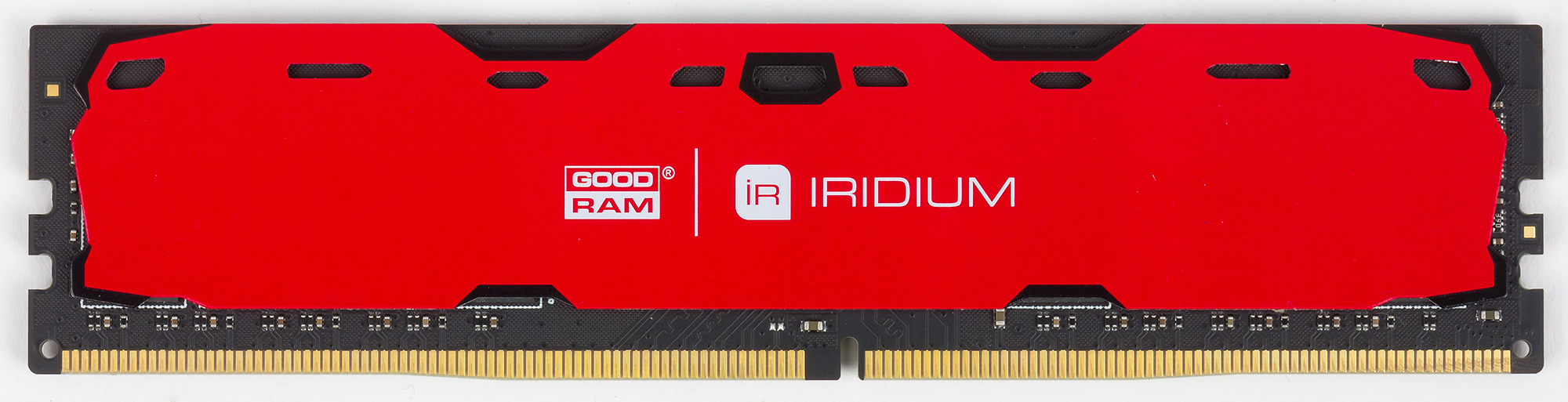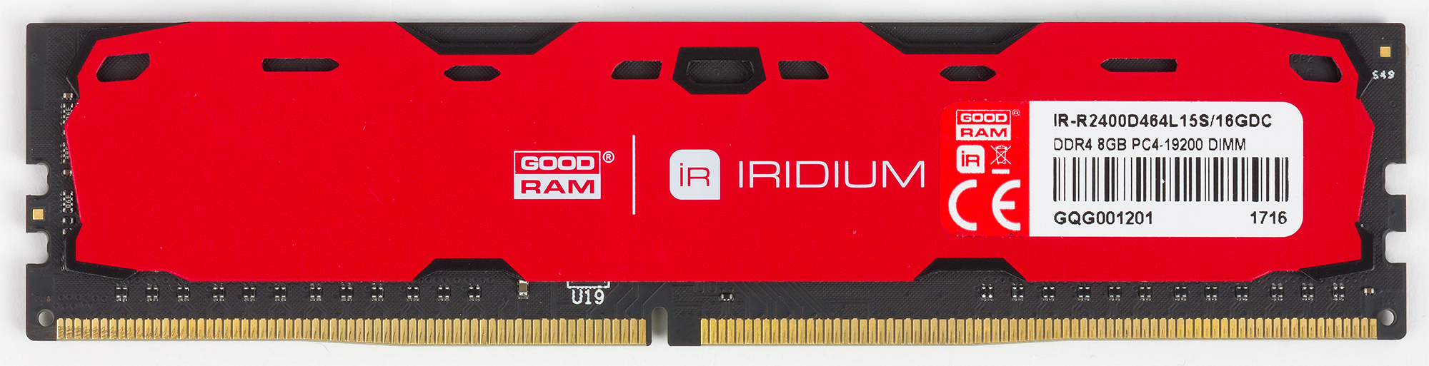 И тут практически как по заказу к нам в руки попала пара модулей памяти GoodRAM IRDM. В ассортименте производителя таковые занимают промежуточное положение между представителями обычной серии и предназначенными для оверклокеров, геймеров и прочих энтузиастов GoodRAM Play. По розничным же ценам они соответствуют как раз наиболее простым и недорогим модулям DDR4. По большинству технических характеристик, впрочем, тоже — в семейство входят модули DDR4 с частотой 2400 МГц и схемой таймингов 15-15-15, емкостью 4 и 8 ГБ. Приобрести их можно по одному или парой — в виде комплектов на 8 и 16 ГБ (в нашем случае это и был как раз комплект IR-2400D464L15S/16GDC, хотя каждый модуль имел отдельную упаковку). Первое сейчас является минимальным значением для бюджетного персонального компьютера, второе — оптимальным для компьютера среднего уровня. Что же касается тактовой частоты, то она является максимальной поддерживаемой официально (т. е. доступной без разгона) процессорами Intel Core седьмого поколения и даже немного превосходит возможности шестого (но уже отстает от восьмого). А вот для процессоров AMD Ryzen такая частота считается низкой, хотя и вполне допустимой на практике.