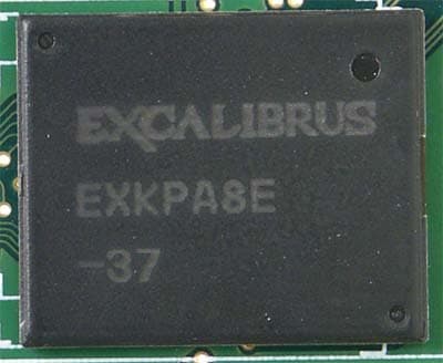 Несмотря на «серийность» модулей (которая, заметим, не подтверждается цветом печатной платы модулей, который должен быть синим для «оригинальных» модулей Excalibrus, как указано на странице производителя: http://www.excalibrus.ru/product02.shtml), в официальной расшифровке Part Number микросхем Excalibrus для модулей DDR2 предусмотрено единственное значение таймингов (поля 8-9) «38», тогда как микросхемы рассматриваемых модулей имеют маркировку «37». Очевидно, что обе маркировки соответствуют единому минимальному времени доступа (3.75 нс), которое можно округлить как в большую (3.8), так и в меньшую (3.7) сторону. Тем не менее, к консенсусу, как говорится, производитель явно не пришел — по крайней мере, на момент производства модулей, оказавшихся в нашем распоряжении.