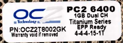 - OCZ DDR2 PC2-6400 Titanium EPP-Ready (OCZ2T8002GK, DDR2-800 4-4-4-1T)