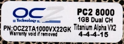 - OCZ DDR2 PC2-8000 Titanium Alpha VX2 (OCZ2TA1000VX22GK, DDR2-1000 4-4-4-2T)