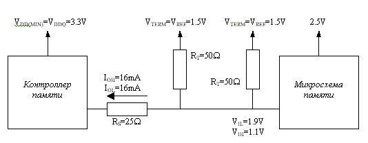 Для протокола SSTL_2 данные параметры составят: 16 мВт при максимальной нагрузке, при минимальной нагрузке — 14.2 мВт и средняя мощность — 15.1 мВт.