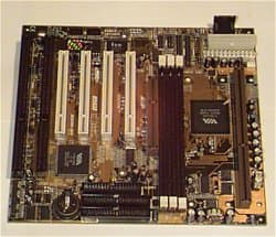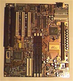TomatoBoard BX98 — AT-системная плата на чипсете VIA Apollo Pro от печально известного производителя. Имеет 4 слота PCI, 3 — DIMM, 2 слота ISA, один из которых разделяемый, и слот AGP. Полный набор внешних частот 66, 75, 83, 100, 103, 112, 124 и 133 МГц доступен к установке через Setup BIOS. К сожалению, плата не продемонстрировала стабильную работу. Имелись проблемы с видеокартой на чипсете i740 и периодически случались зависания системы. В общем, я ничего другого от TomatoBoard не ожидал.