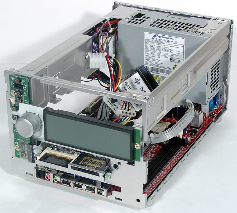 Мы не проводили особо тщательного исследования модема, но можем, по крайней мере, сказать, что после выбора России в качестве страны использования (в настройках драйвера) он вполне сносно определял сигнал «занято» и держал соединение на среднего качества московской телефонной линии. Наконец, в завершение описания внутреннего устройства barebone-комплекта отметим, что в нашей модели был установлен БП на 250 Вт от очень уважаемой компании FSP Group Inc. Вроде бы в первых поставках Mega PC использовался иной 200-ваттный БП, и вроде бы даже часть того выпуска была отозвана именно из-за проблем с питанием. Мы тестировали наш экземпляр в максимально тяжелых условиях (используя даже более мощный процессор, чем это позволяется по спецификации) и не обнаружили никаких признаков проблемы.
