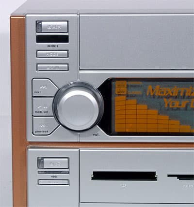 Легкое нажатие на кнопку в верхнем левом углу передней панели (кнопки верхней части типично «Hi-Fi»-ные с маленьким шагом и четким кликом) или кнопку «Hi-Fi» на пульте ДУ и перед нами уже элегантный музыкальный центр,