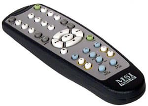 Прилагаемый к Mega PC инфракрасный пульт совмещает в себе функции для работы как с модулем Hi-Fi, так и с опциональным TV-тюнером (производства MSI это специальная версия продукта TV Anyware Master PCI, лишенная и так имеющегося в Mega PC AM/FM-тюнера). Пульт лишь дублирует кнопочное управление с передней панели компьютера, не давая доступа ни к каким эксклюзивным возможностям центра (как вы убедитесь дальше, этих возможностей вообще не так уж и много), но, конечно, им оперировать гораздо удобнее. Питание устройства ДУ осуществляется от двух батареек размера AAA (присутствуют в комплекте), сам пульт довольно легкий, удобно лежит в руке, и небольшие претензии у нас возникли лишь к его кнопкам: они слишком маленькие и достаточно жестко нажимаются.
