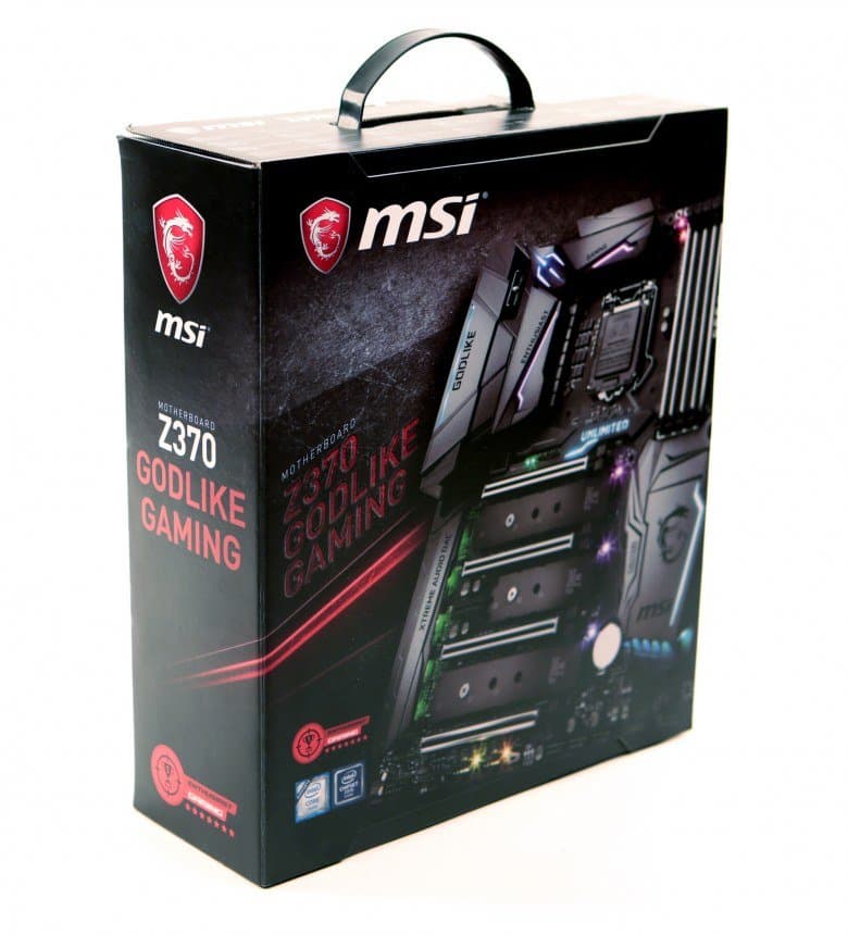 Плата MSI Z370 Godlike Gaming поставляется в большой по размерам коробке с ручкой.