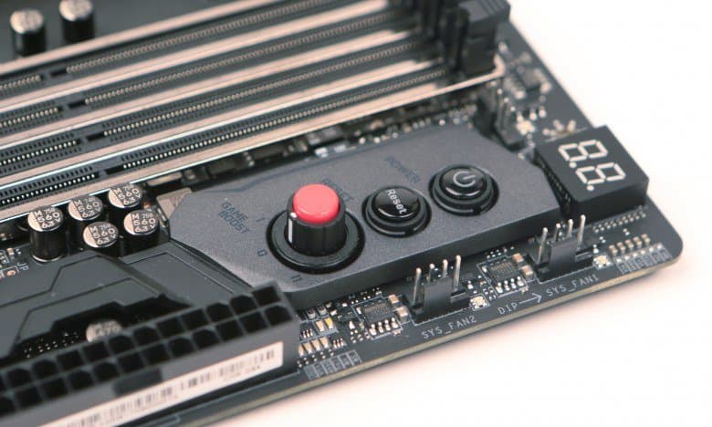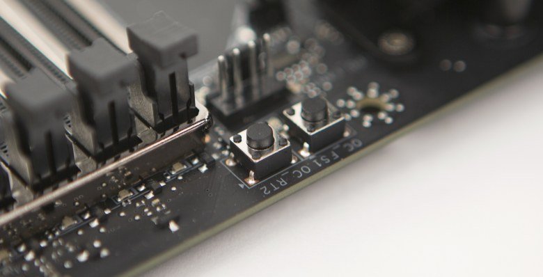 Для разгона системы пригодятся и еще две кнопки: OC_FS1 и OC_RT2. При нажатии OC_FS1 система выйдет в UEFI BIOS Setup после перезагрузки (без нажатия клавиши Del). При нажатии и удержании OC_RT2 плата будет продолжать попытки разгона до тех пор, пока не загрузится нормально.