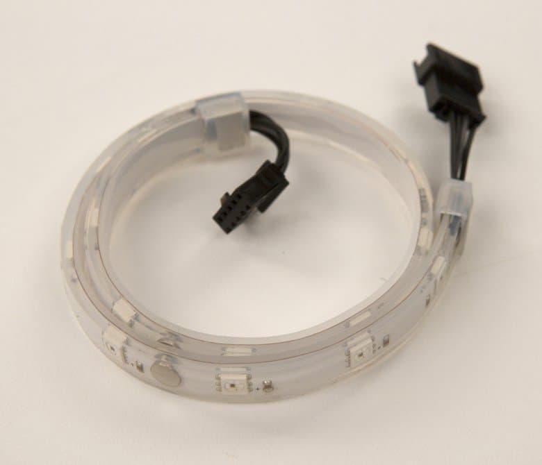 Кроме того, в комплект поставки входит RGB-лента длиной 38 см (5050, 5 В) с отдельным кабелем для подключения. В ленту встроены магниты, что позволяет легко монтировать ее в корпусе. Вообще, несмотря на кажущуюся очевидность идеи комплектовать RGB-лентами материнские платы с разъемами для подключения таких лент, это первая плата, у которой мы наблюдаем расширение комплектации в означенную сторону.