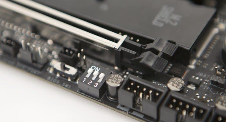 Еще одна особенность платы — возможность переключения между двумя микросхемами BIOS.