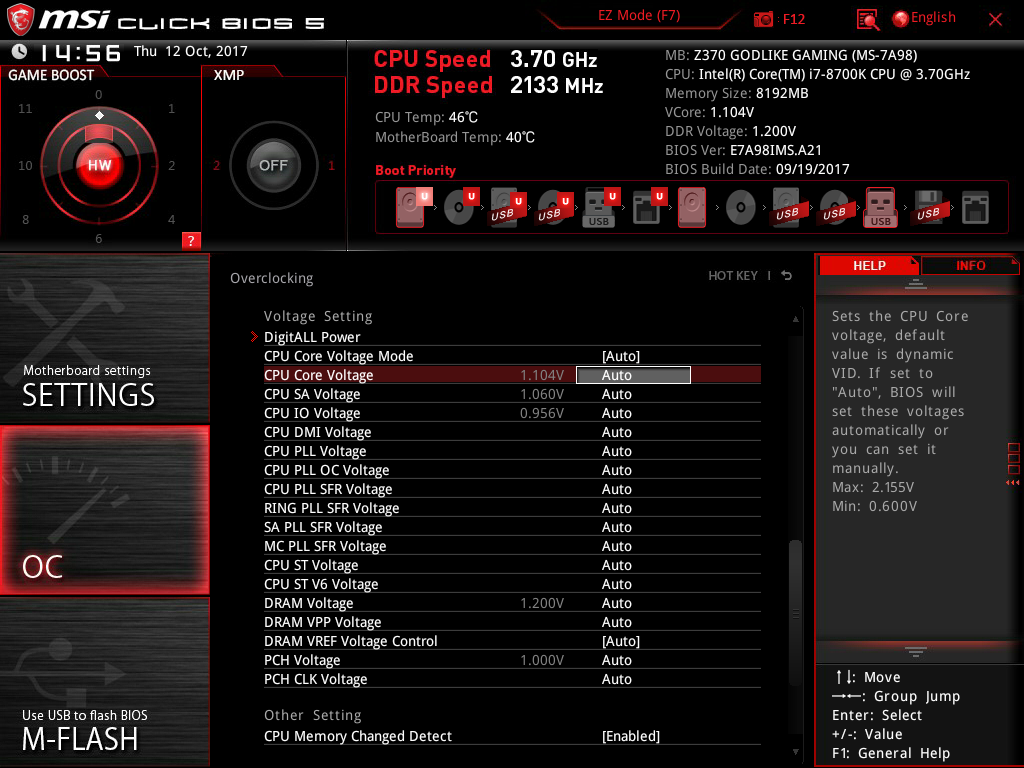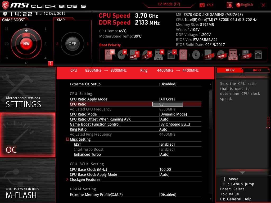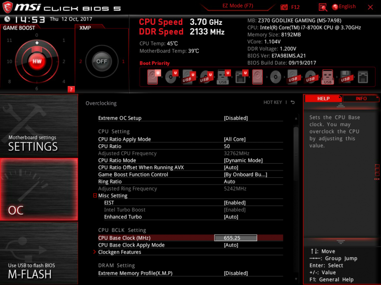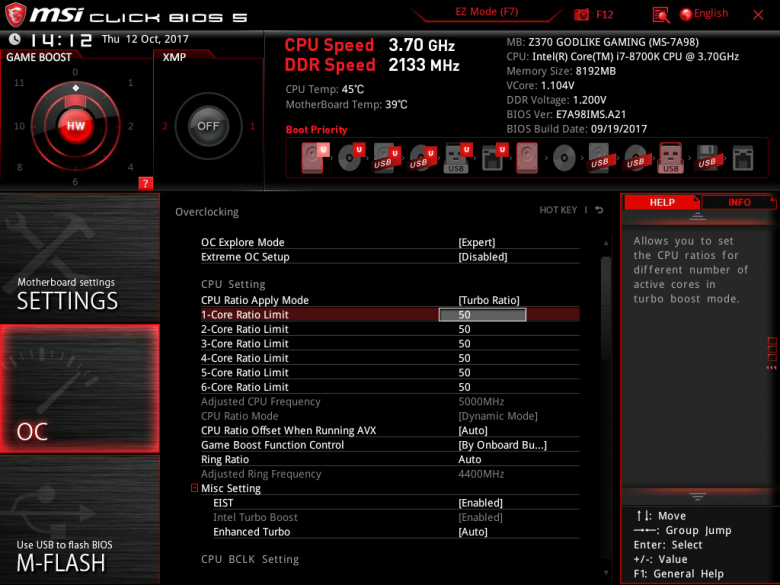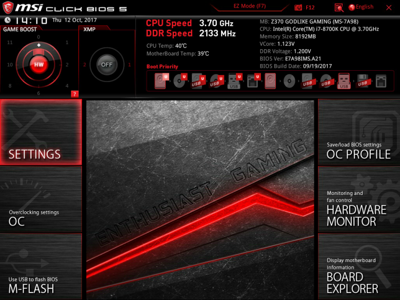 Каких-либо существенных изменений в сравнении с тем, что было на платах с чипсетом Intel Z270, UEFI BIOS Setup новой платы платы MSI Z370 Godlike Gaming не имеет. Это все тот же MSI Click BIOS 5.