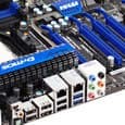 На задней панели собрано все необходимое, включая два сетевых гигабитных порта, eSATA и два USB 3.0. Странно только почему не выведен ни один FireWire-порт, хотя соответствующий контроллер на плате есть. И еще более странно, что такого порта нет и на имеющейся в комплекте планке для вывода двух дополнительных USB-портов.