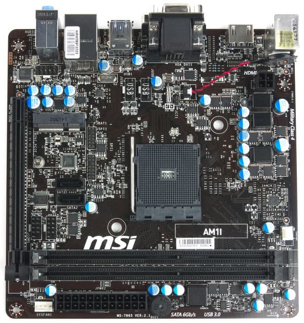 Плата MSI AM1I выполнена в форм-факторе Mini-ITX (170 × 170 мм) и может быть установлена в корпус, поддерживающий платы с форм-фактором Mini-ITX или бо́льшие по размеру. Для монтажа платы предусмотрено четыре стандартных отверстия.