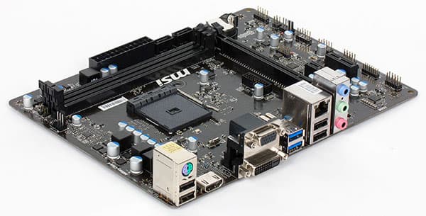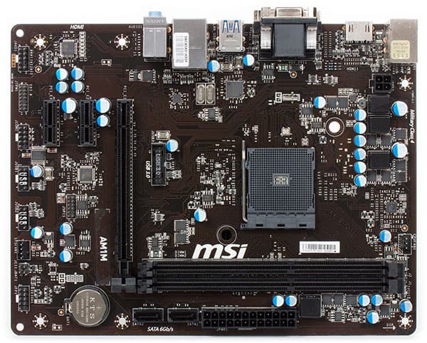 Понятно, что в типовом корпусе microATX или вообще АТХ можно использовать и Mini-ITX-платы, но зачем? Ведь туда можно установить и менее компактные решения, что особенно полезно для тех, кто планирует использовать карты расширения PCIe: microATX позволяет предоставить им больше слотов расширения. Так что давайте посмотрим на типичное, но уже не слишком компактное решение для платформы AMD AM1 — плату MSI AM1M.