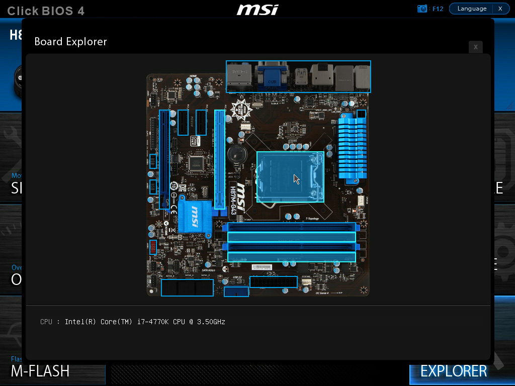 Модуль Board Explorer в графическом виде показывает кратную информацию об установленных на материнской плате устройствах, включая процессор, память, накопители и платы расширения. Встроенная утилита M-Flash может быть использована для сохранения текущей версии BIOS и для ее обновления. Из других программ упомянем просмотр информации о процессоре и таймингах модулей оперативной памяти.