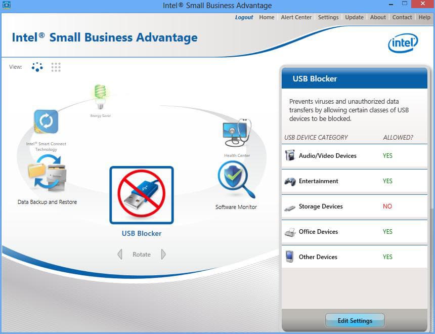 Попробуем коротко описать, как долджен работать этот сервис. Все управление происходит из специальной утилиты, доступ к которой закрывается паролем. Дополнительно предусмотрен механизм восстановления пароля с использованием секретных вопросов и ответов, а также есть встроенные средства для отправки сообщений администратору по электронной почте. В текущей версии SBA представлено несколько утилит и сервисов: Energy Saver — установка расписания работы ПК с точностью до получаса для каждого дня недели, Health Center — запуск сервисных утилит и проведения обслуживания ПК по расписанию (в частности дефрагментация диска, очистка временных файлов браузера), Software Monitor — мониторинг сообщений сервисов безопасности Windows и пересылка информации администратору по электронной почте, Data Backup and Restore — управление встроенным в Windows сервисом File History, USB Blocker — контроль подключаемых к ПК внешних устройств. Пожалуй, последняя является одной из наиболее понятных и полезных функций. В ней администратор системы может заблокировать работу нежелательной периферии по типу, а при необходимости добавить разрешение для конкретных устройств.