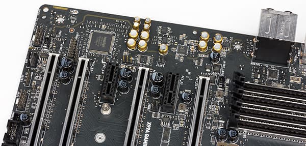 А вот слоты PCI Express 3.0 x16 реализованы на базе процессорных линий PCIe 3.0, а режим работы этих слотов зависит от того, какой процессор устанавливается на плате. Напомним, что процессоры Haswell-E и Broadwell-E существуют в вариантах с 40 и 28 линиями линиями PCIe 3.0.