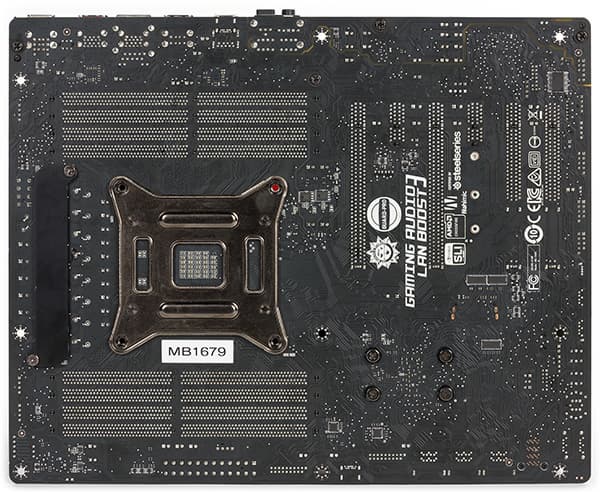 Плата MSI X99A Gaming Pro Carbon выполнена в форм-факторе ATX (305×244 мм). Для монтажа платы предусмотрены девять стандартных отверстий.