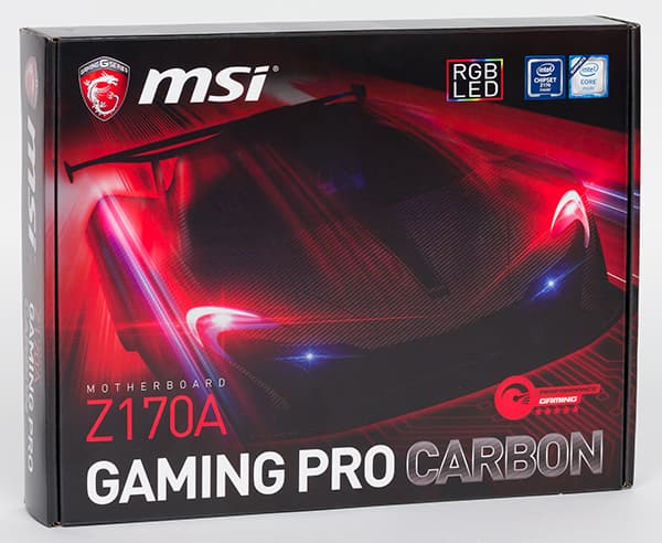 Плата MSI Z170A Gaming Pro Carbon поставляется в компактной картонной коробке, оформленной в бордовых тонах, на которой красноречиво расписаны все достоинства платы.