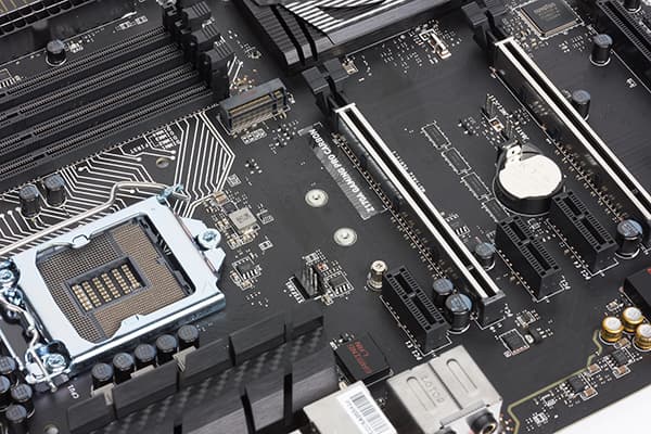 Итак, на плате имеется слот PCI Express 3.0 x4 в форм-факторе PCI Express 3.0 x16 (остальные слоты PCI Express 3.0 x16 мы не считаем, поскольку они реализованы на базе процессорных линий PCIe 3.0), четыре слота PCI Express 2.0 x1, разъем M.2 (PCIe 3.0 x4 и SATA), разъем SATA Express, гигабитный сетевой контроллер и контроллер USB 3.1.