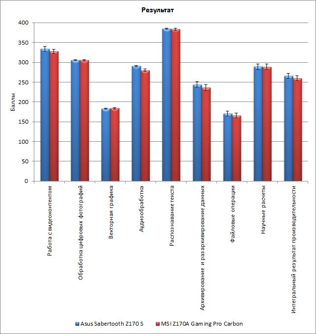 Как мы и предполагали, в плане производительности результаты для плат MSI Z170A Gaming Pro Carbon и Asus Sabertooth Z170 S отличаются друг от друга в пределах погрешности.