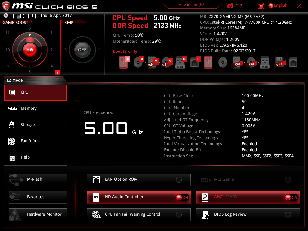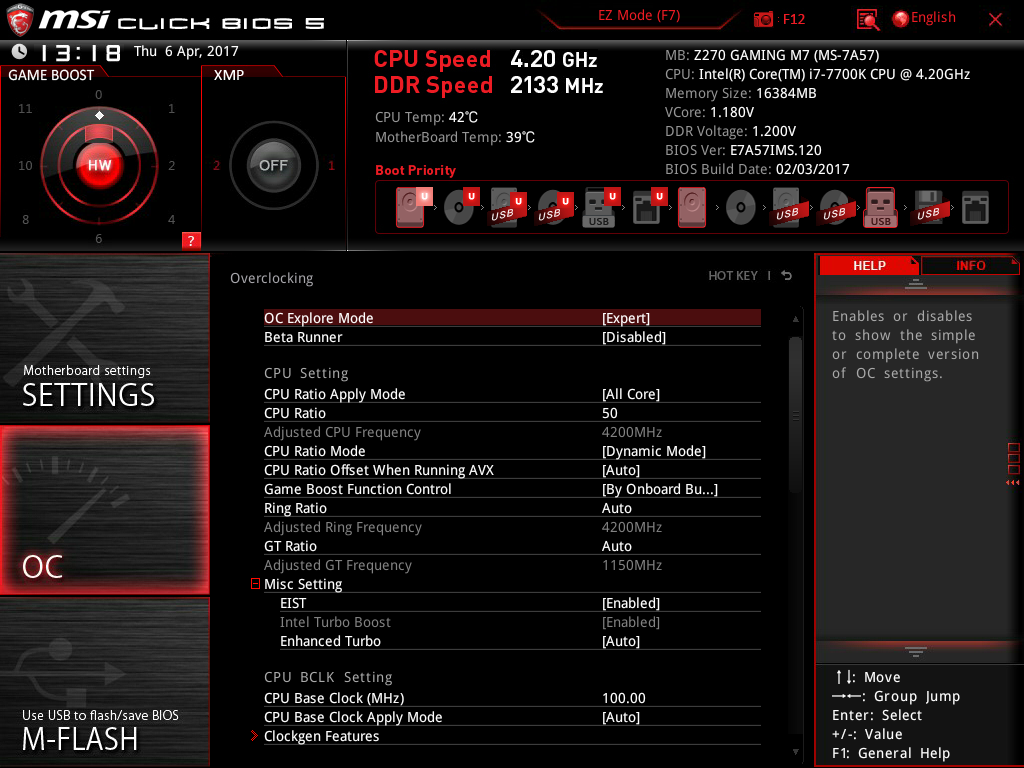 По своему интерфейсу UEFI BIOS платы MSI Z270 Gaming M7 практически не отличается от UEFI BIOS других плат MSI. Это все тот же MSI Click BIOS 5.