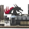 Материнская плата поставляется в красивой и крепкой картонной коробке. Основные цвета оформления — красный и черный. Для дополнительного эффекта используется выборочное покрытие глянцем. Фотографии продукта или окошка для знакомства с внешним видом платы в этот раз нет. На лицевой стороне коробки разместили изображение дракона и логотип серии. Кроме сокращенного списка технических характеристик на боковой стороне на дне коробки есть и полная их версия, а также изображение задней панели платы. Здесь же приводится описание некоторых фирменных технологий и особенностей продукта.