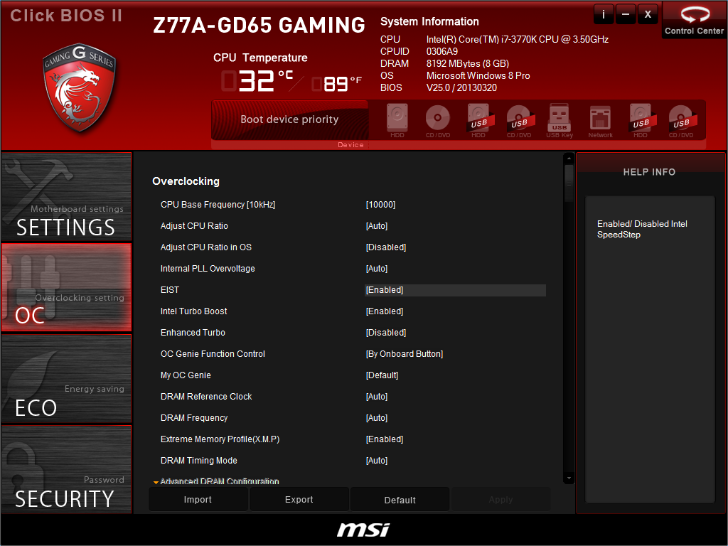 Ну а энтузиастам уже привычно разбираться с многочисленными длинными списками опций с непонятными названиями. В разделе OC для них есть множество возможностей, включая просмотр детальной информации и процессоре и памяти (SPD и XMP) и работу с профилями разгона. Напомним, что некоторые настройки BIOS можно изменить из Windows с использованием программы Click BIOS II.