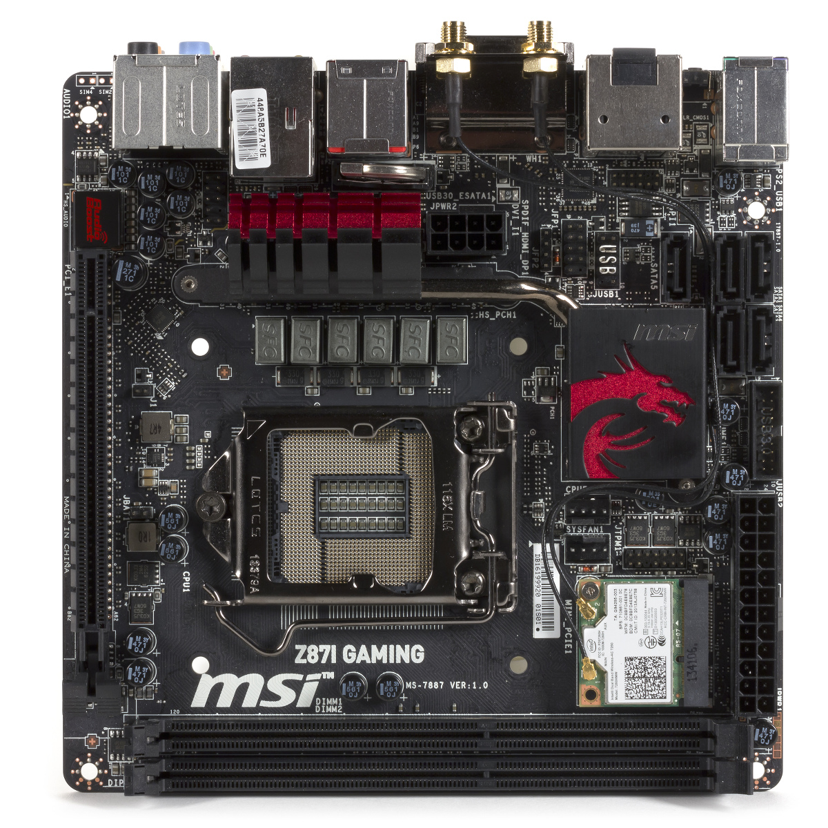 Материнская плата MSI Z87I Gaming AC отличается наличием в комплекте беспроводного сетевого контроллера. Сложно считать это существенным преимуществом для массового пользователя, однако если говорить о топовом сегменте, когда пользователь выбирает максимальное решение все-в-одном с работой «из коробки», это выглядит вполне обосновано.