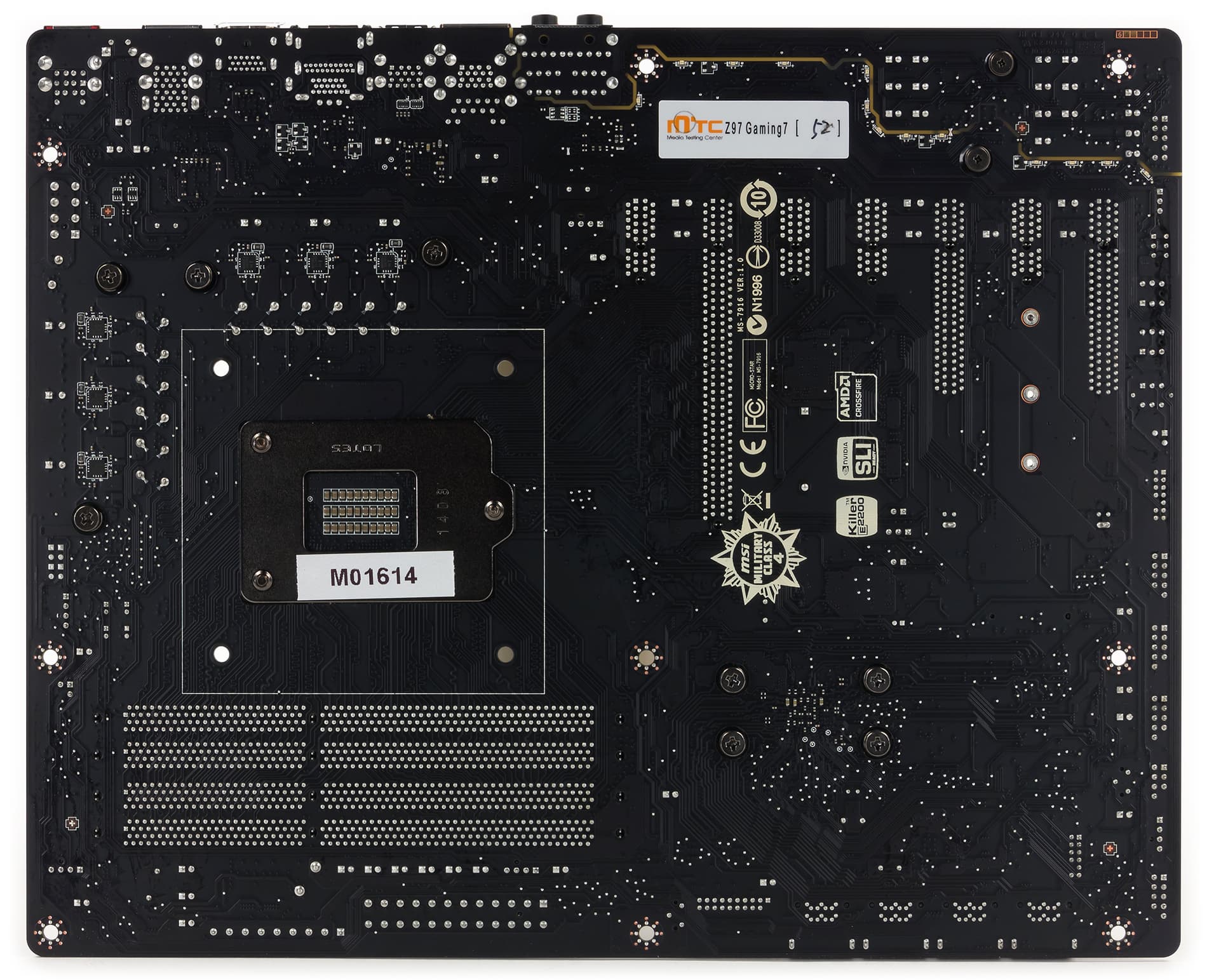 Плата MSI Z97 Gaming 7 выполнена в форм-факторе ATX (305×244 мм), а для ее монтажа в корпус предусмотрены 9 стандартных отверстий.